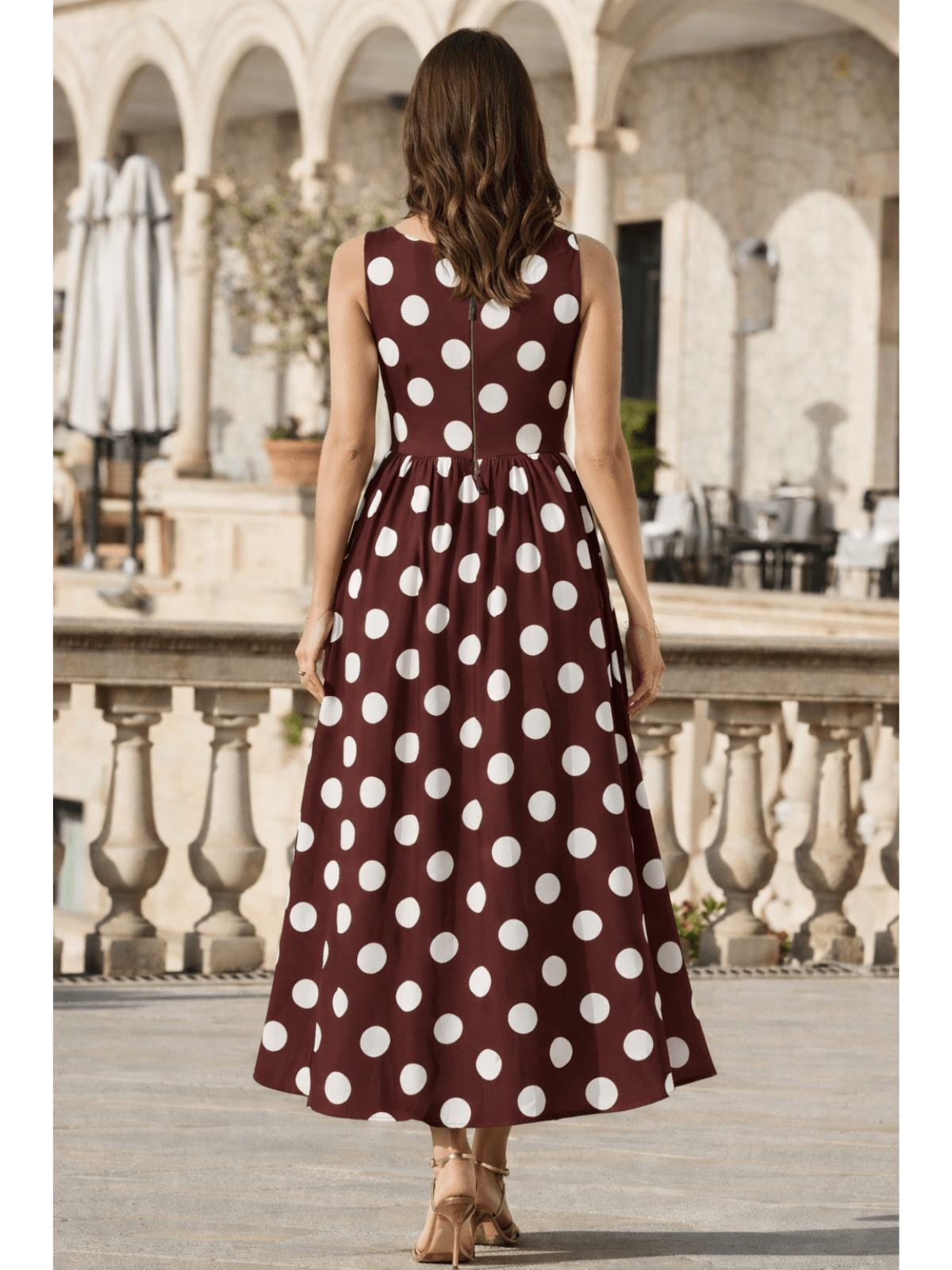 Davica Chocolate Brown and Cream Polka Dot Midi Dress
