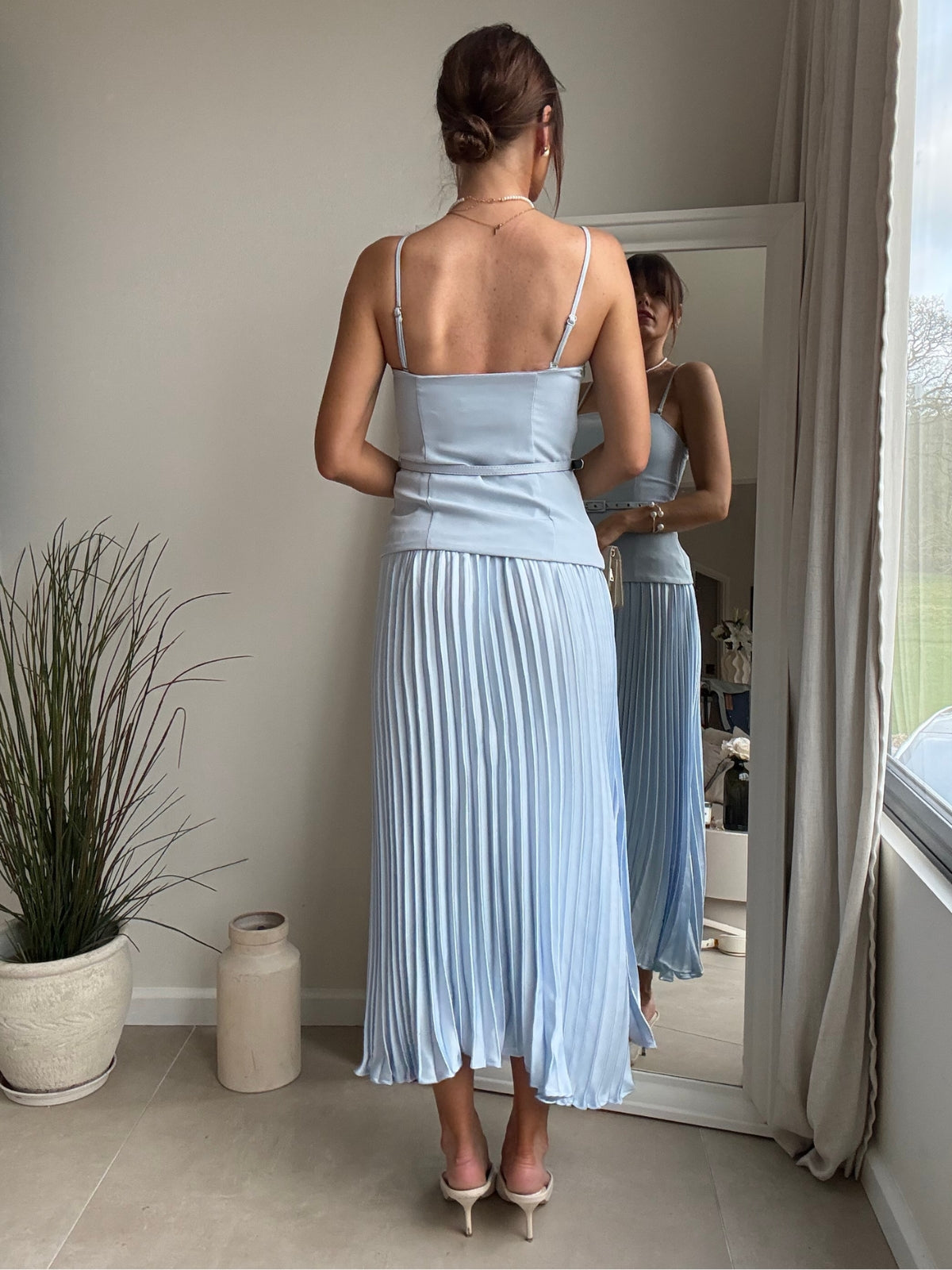 Anna Bandeau Pleat Dress in Baby Blue